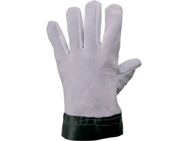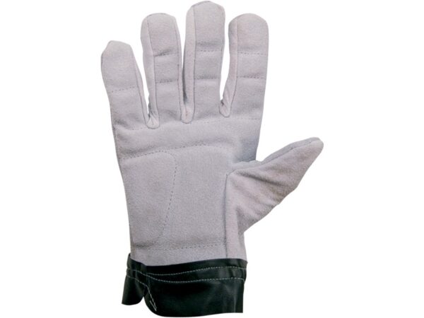 Skórzane rękawice antywibracyjne z sztywnym mankietem skórzanym. W części chwytnej są wszyte poduszki z materiału antywibracyjnego Poreten z funkcją tłumienia drgań. Zalecane zastosowanie: praca z narzędziami wibrującymi, praca z piłą łańcuchową.