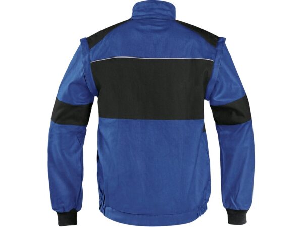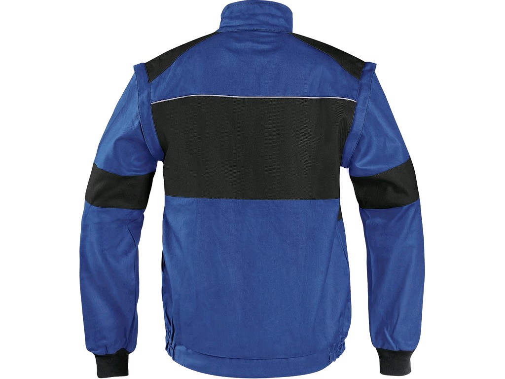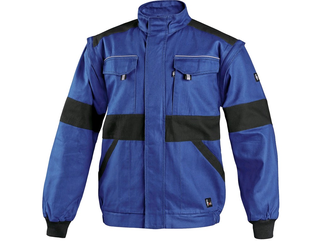 Męska bluza robocza, odpinane rękawy z elastycznym mankietem, kryte zapięcie na zamek i rzepy, kieszenie na piersi z patkami, ukryta kieszeń na piersi na zamek, zwykłe kieszenie boczne, dolna część na bokach z wszytą gumą, elementy odblaskowe. Zalecane zastosowanie: budownictwo, przemysł lekki, logistyka, magazyn, autoserwisy, utrzymanie, montaż, rolnictwo, ogród, hobby.