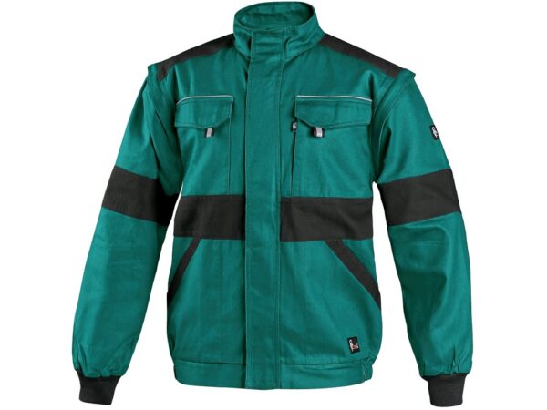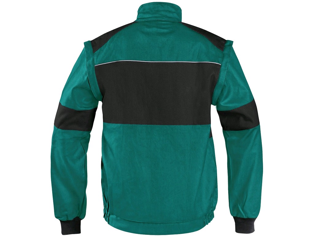 Męska bluza robocza, odpinane rękawy z elastycznym mankietem, kryte zapięcie na zamek i rzepy, kieszenie na piersi z patkami, ukryta kieszeń na piersi na zamek, zwykłe kieszenie boczne, dolna część na bokach z wszytą gumą, elementy odblaskowe. Zalecane zastosowanie: budownictwo, przemysł lekki, logistyka, magazyn, autoserwisy, utrzymanie, montaż, rolnictwo, ogród, hobby.