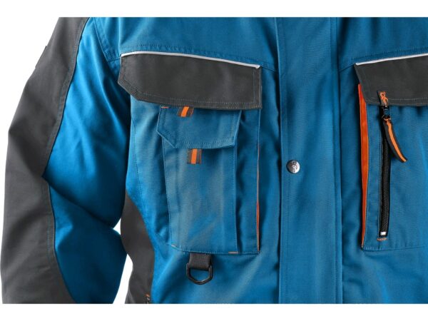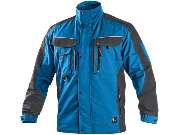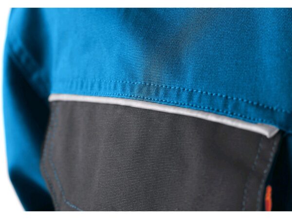 Męska bluza robocza, ramiona wzmocnione poliestrem 600D, rękawy z regulowanym mankietem, przykryte zapinanie na zamek i zatrzaski, wielofunkcyjne kieszenie na piersiach, boczne kieszenie na zamek, regulowany pas, elementy odblaskowe. Zalecane zastosowanie: budownictwo, inżynieria, przemysł lekki, przemysł samochodowy, logistyka, magazyn, spedycja, autoserwisy, utrzymanie, montaż, rolnictwo, ogród, hobby.