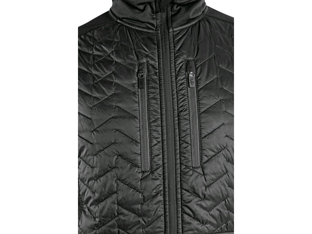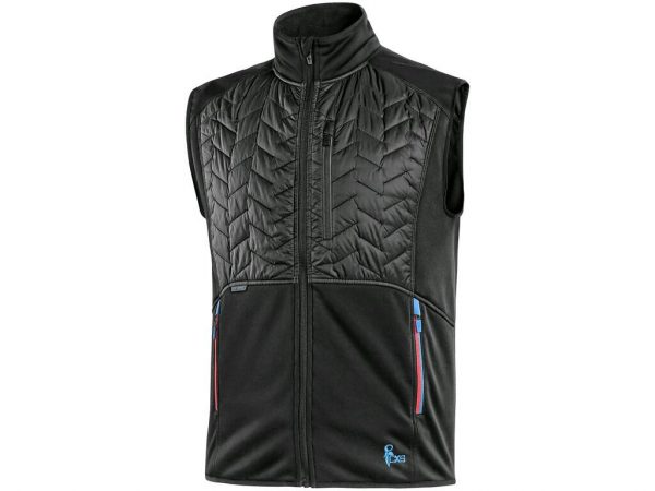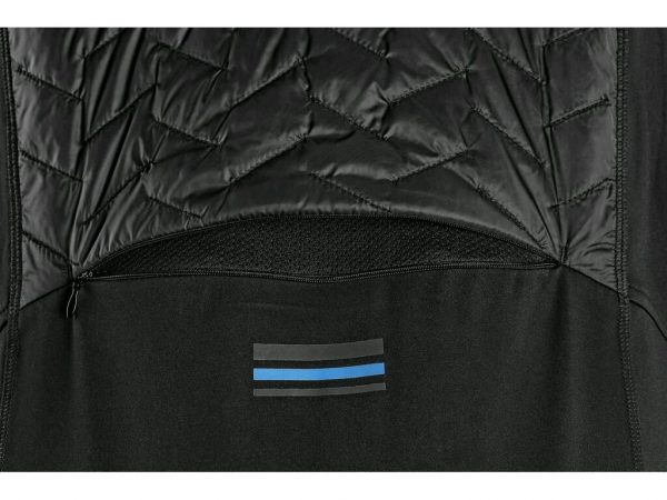 Męska kamizelka z kombinowanych materiałów, odpowiednia do pracy i wypoczynku. Kamizelka ma zapięcie na zamek, dolny brzeg w gumkę, kieszeń napiersiową i boczne kieszenie na zamek, odblaskowe elementy i wewnętrzną kieszeń na zamek.