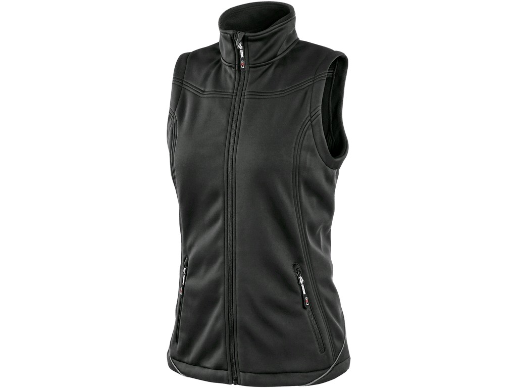 Damska lekka kamizelka na zamek, ściągacz w dolnej części, 2 boczne kieszenie na zamek, elementy odblaskowe.